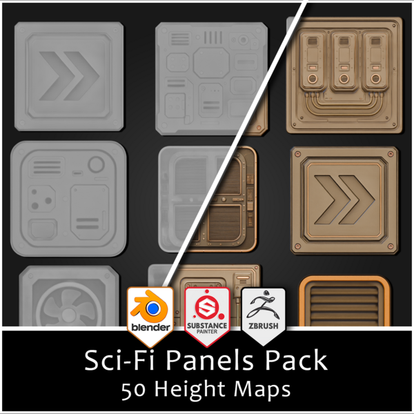 3DT Sci-Fi Decoration Pack – 50 Decals & Stencils For Blender, Substance Painter & Game Design