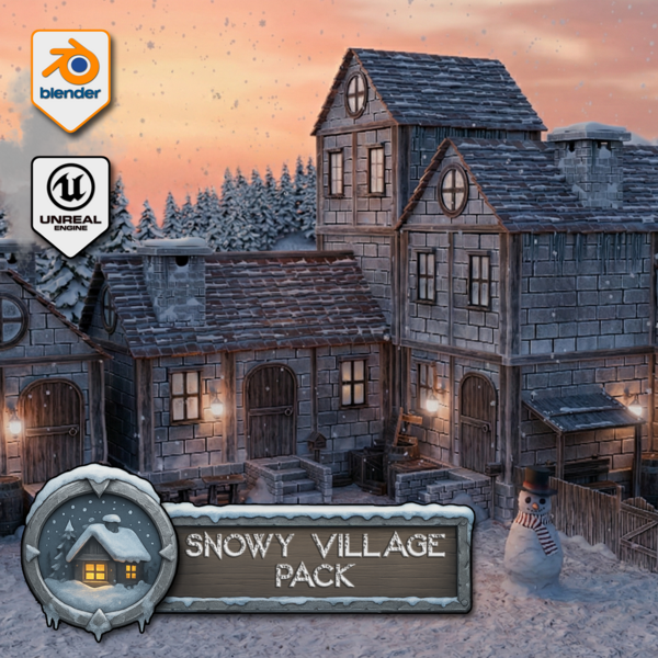 3DT Snowy Village Modular Pack for Blender & Game Design