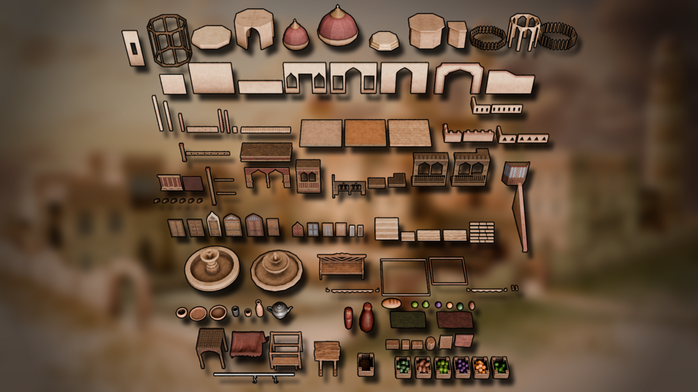 Perfect for stylized fantasy cities, desert marketplaces, or historical recreations.