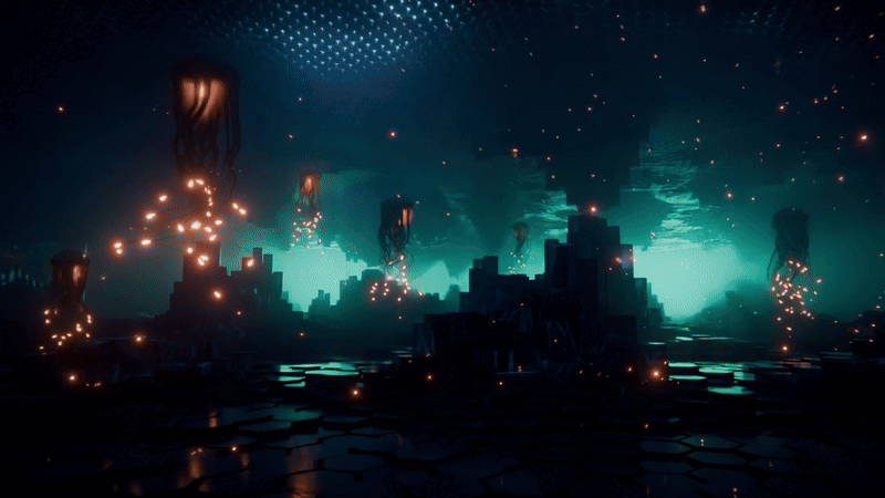 - GIF 3 – UE5 environments: Lumen/Nanite scenes, fog volumes, cinematic fly-throughs.