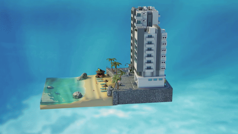 - GIF 2 – Geo Nodes in action: stairs, bridges, walls, stylized ecosystems building themselves.