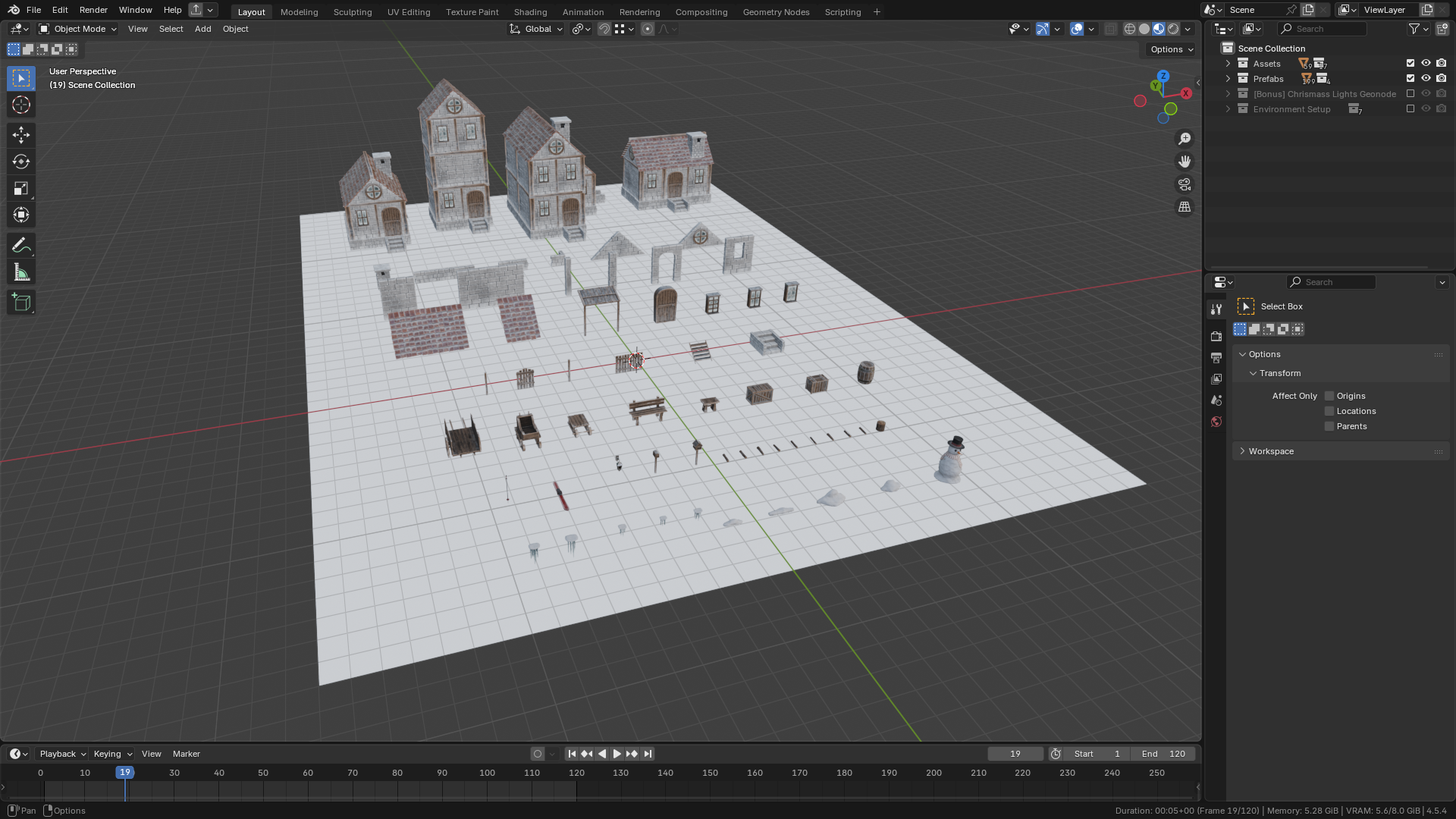 3DT Snowy Village Modular Pack for Blender & Game Design