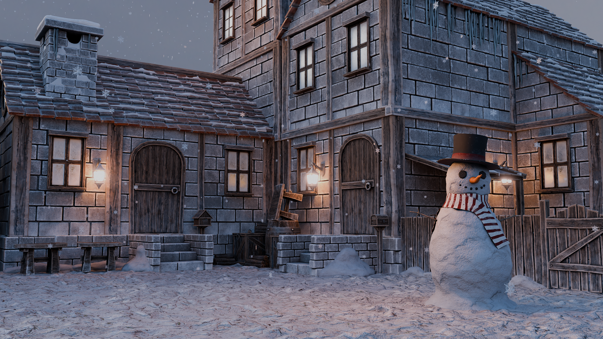 - Cozy Medieval Winter Atmosphere – Perfect for stylized fantasy games, seasonal scenes, or cinematic snow village shots.