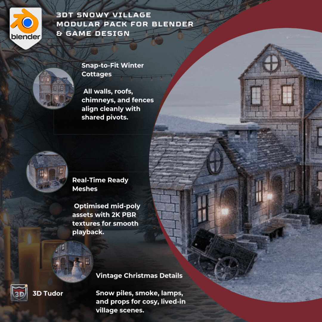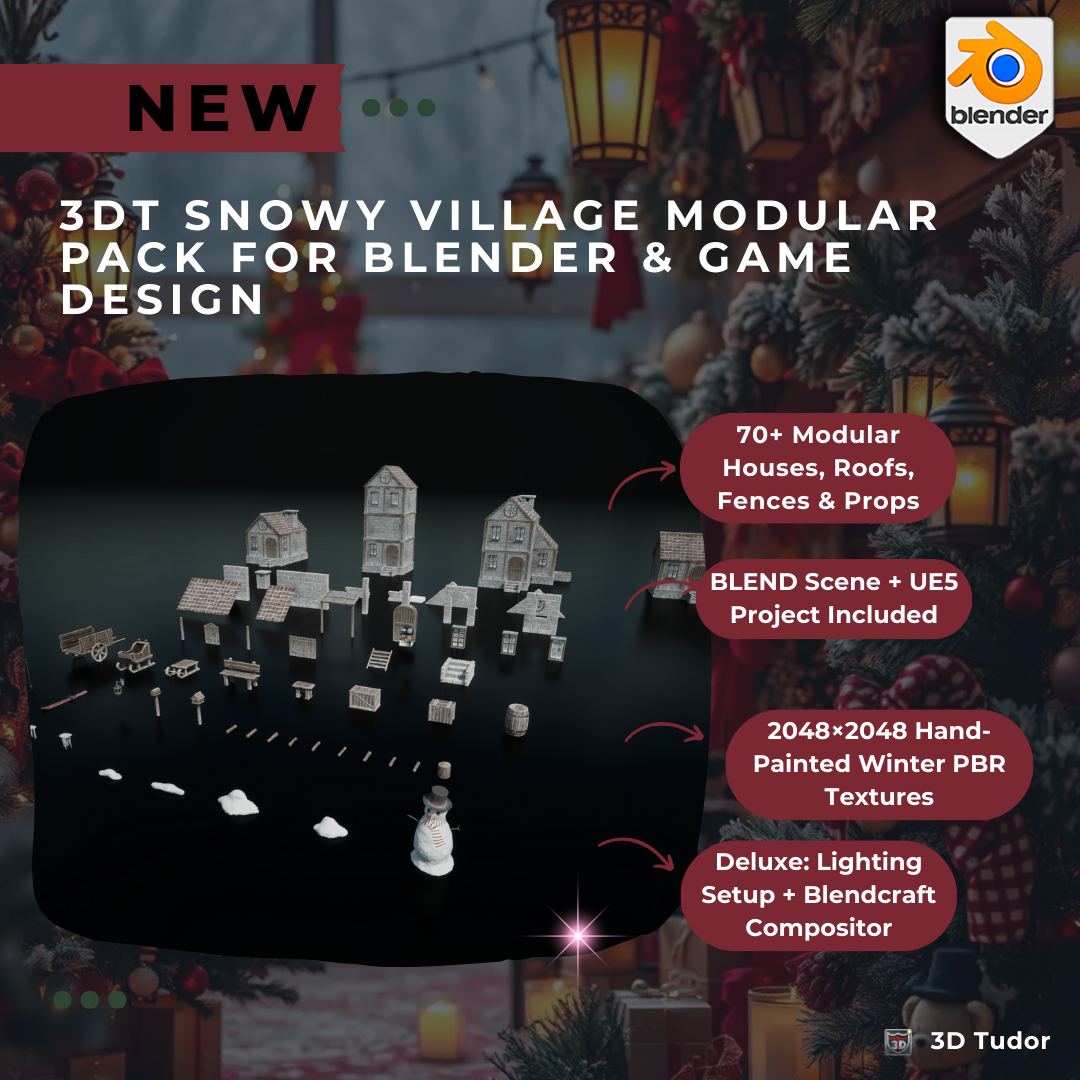 ❄️ Meet the 3DT Snowy Village Modular Pack for Blender & Game Design!