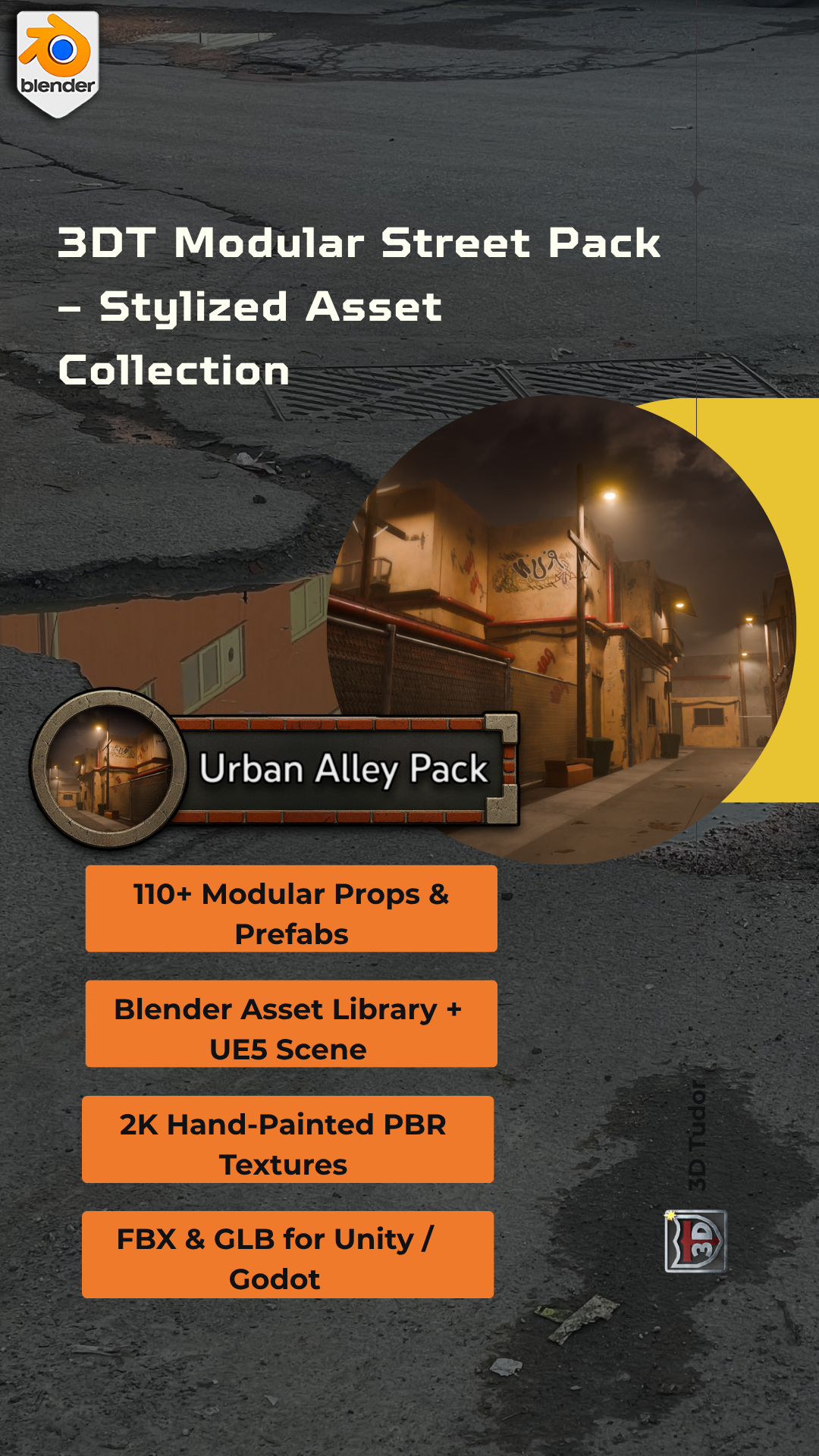 Grab the 3DT Stylized Urban Alleyway Pack — Standard or Deluxe — and drop some alley magic into your next scene.