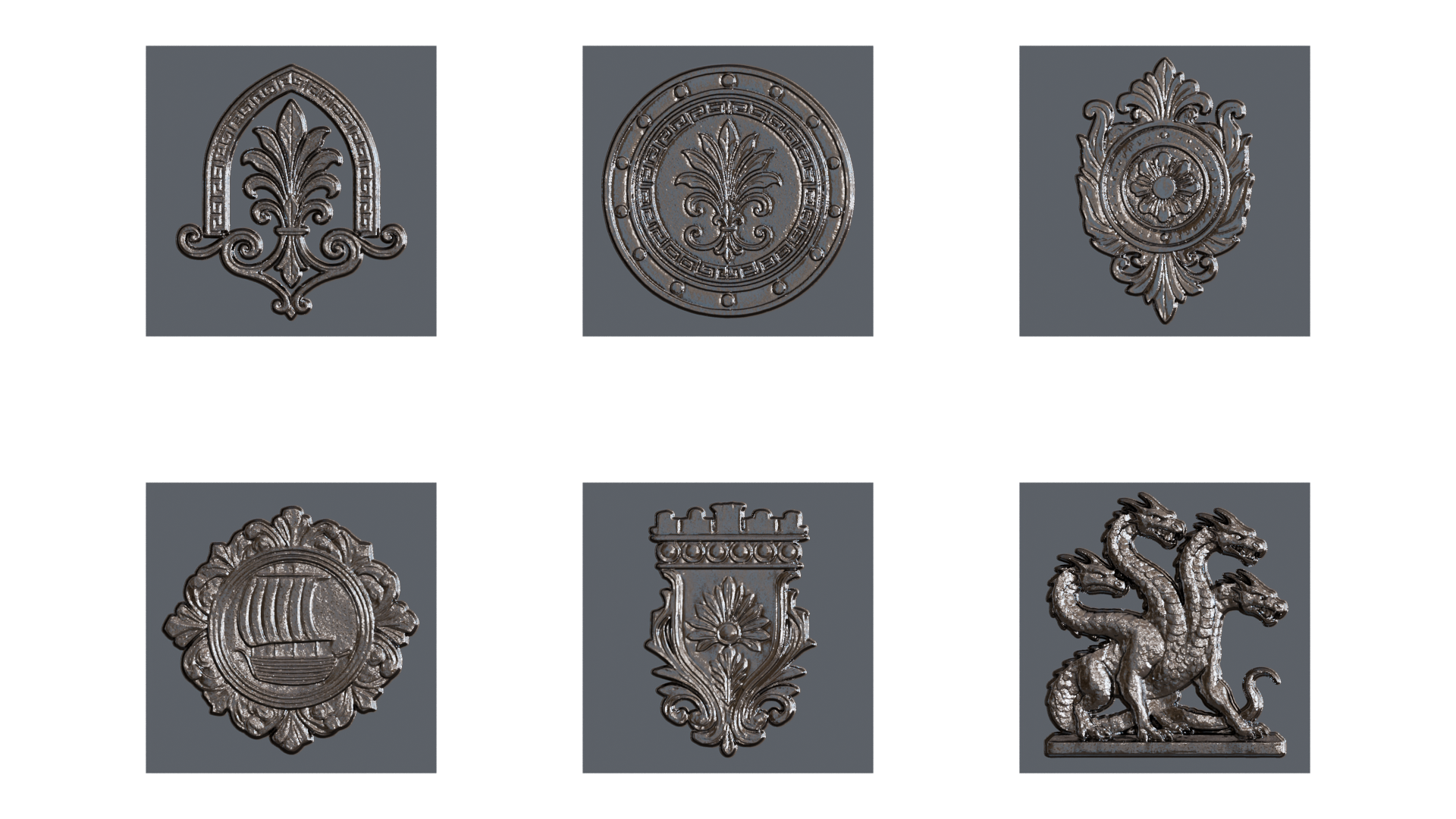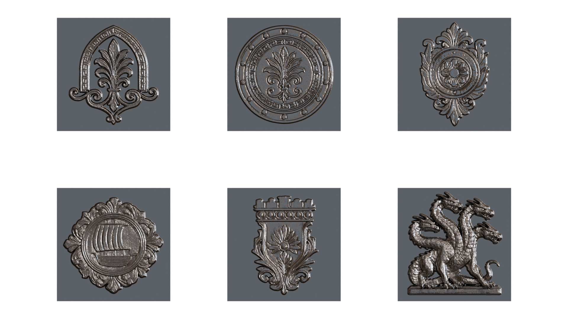Mythic motifs, heroic crests, and ornate ornaments—engineered to drop straight into your pipeline.