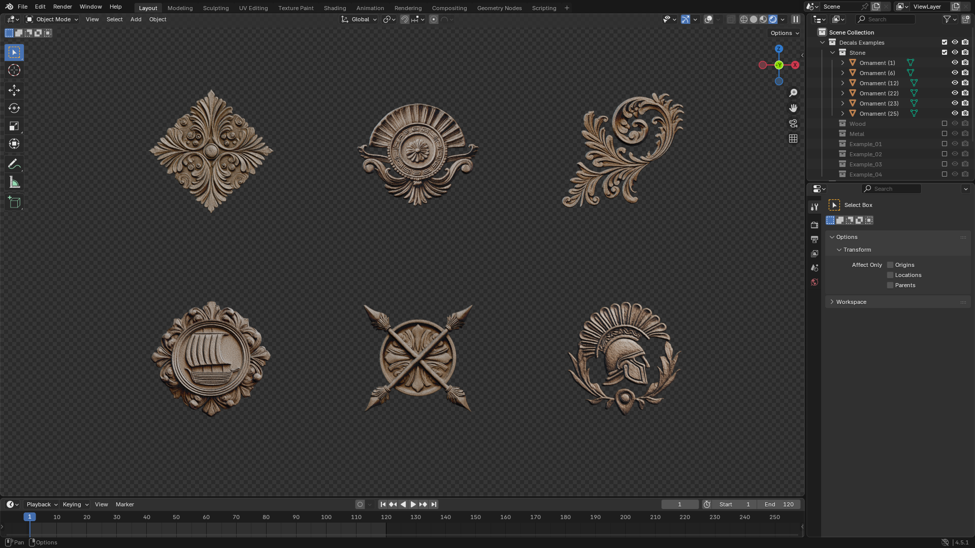 3DT Greek Ornamental Pack – 50 Decals & Stencils for Blender, Substance Painter & Game Design