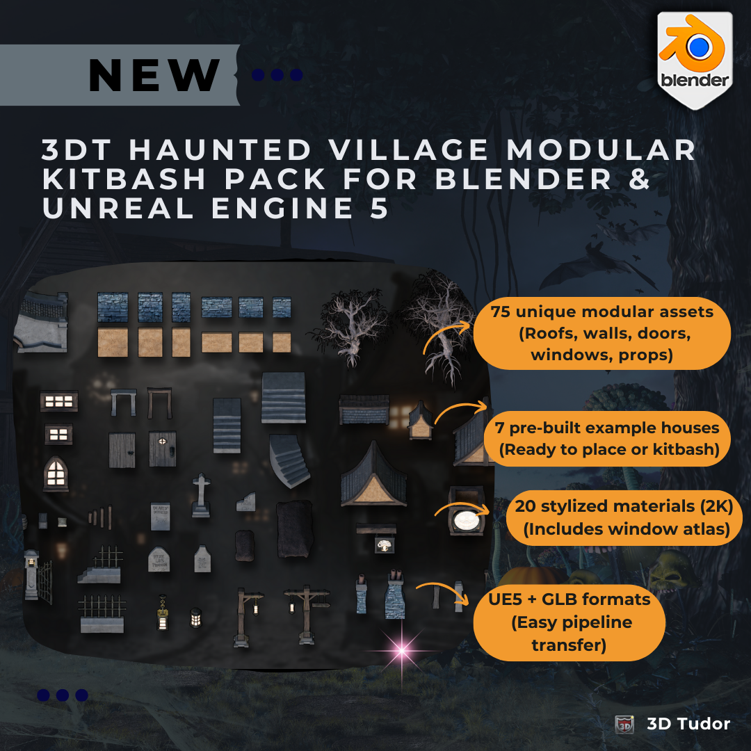 3DT Haunted Village Modular Kitbash Pack for Blender & Unreal Engine 5