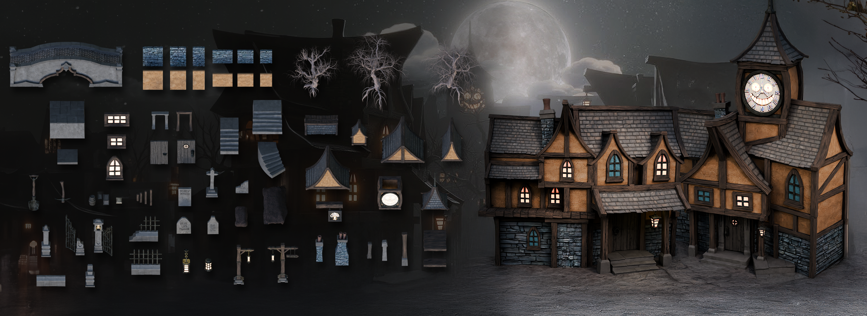 If you want stylized Halloween streets, storybook horror towns, spooky “safe houses”, or a full haunted village hub for a game level, this kit is designed to get you there fast—without sacrificing the handcrafted look.