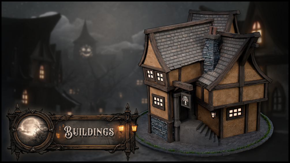 This pack is the shortcut: a clean modular kitbash set built for fast layout, quick iteration, and easy variation. You can build anything from a single creepy corner (perfect for a hero shot) to a full street of crooked houses, alleys, and a slightly suspicious clock tower.