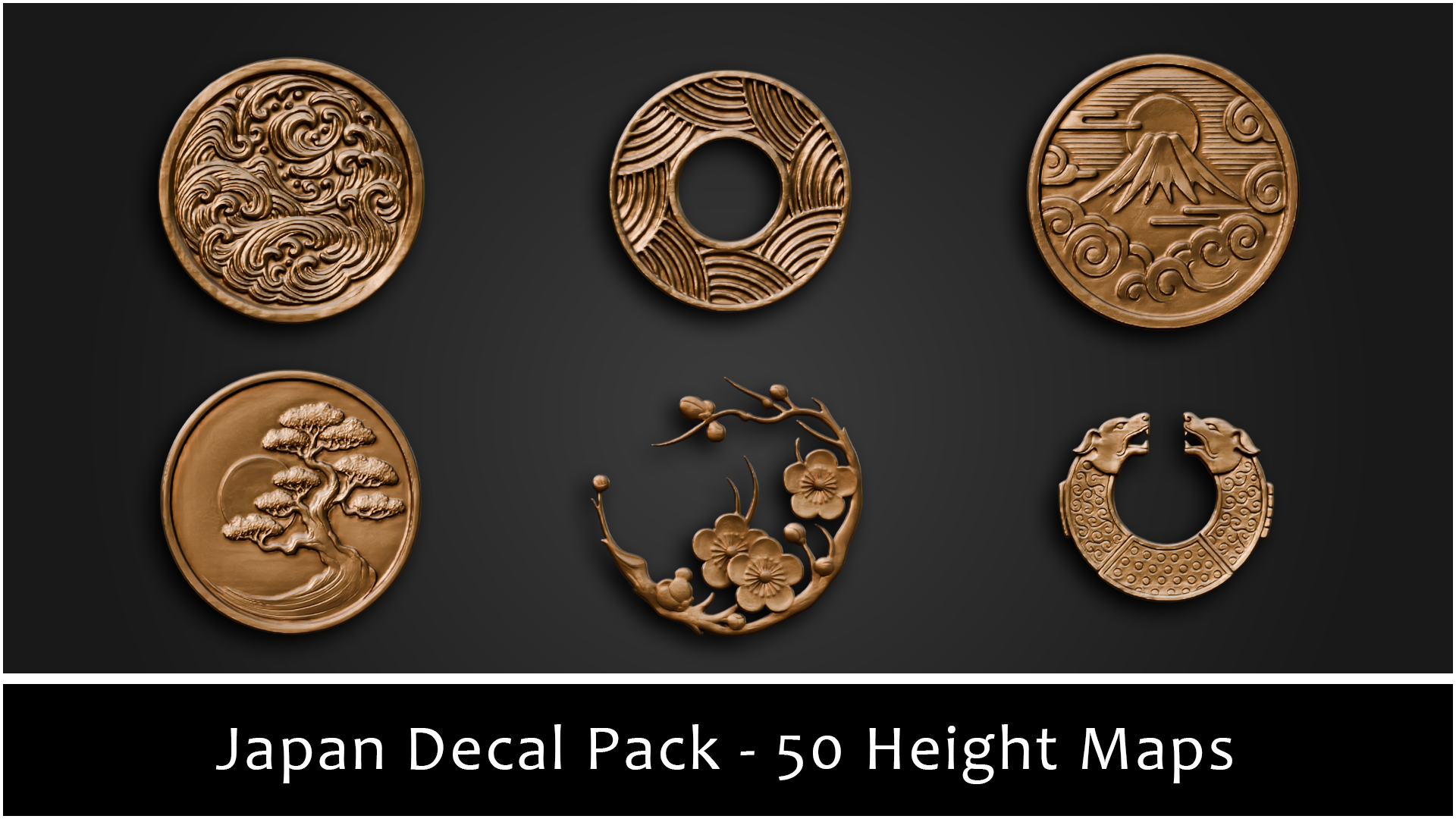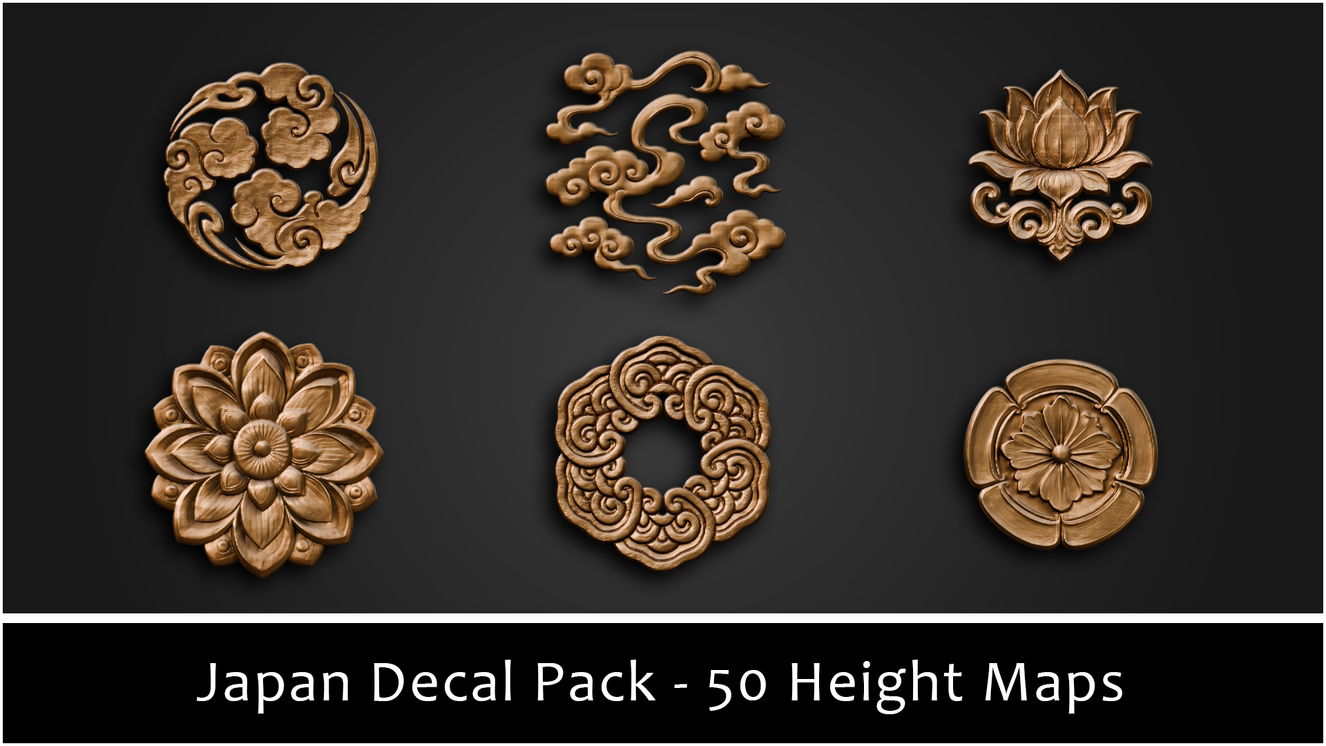 3DT Japanese Ornamental Decal & Stamp Pack — 50 Height Stamps for Blender, Substance Painter, and Game Art