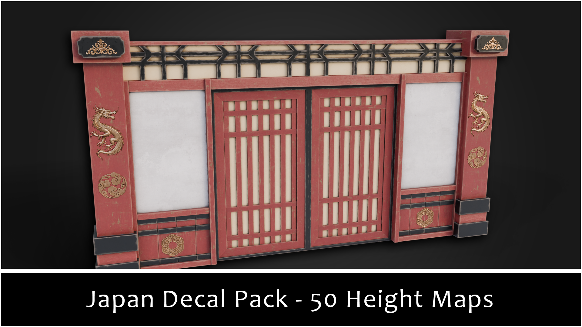 - Instant Japanese styling for gates, doors, panels, pillars, props, relics, and set dressing