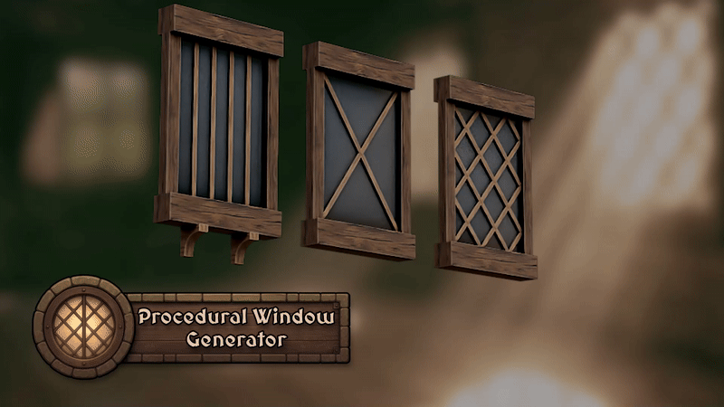 Create modern, medieval, and Victorian windows in seconds with a Blender 4 Geometry Node. Grids, ornaments, shutters, supports, and PBR-ready materials.