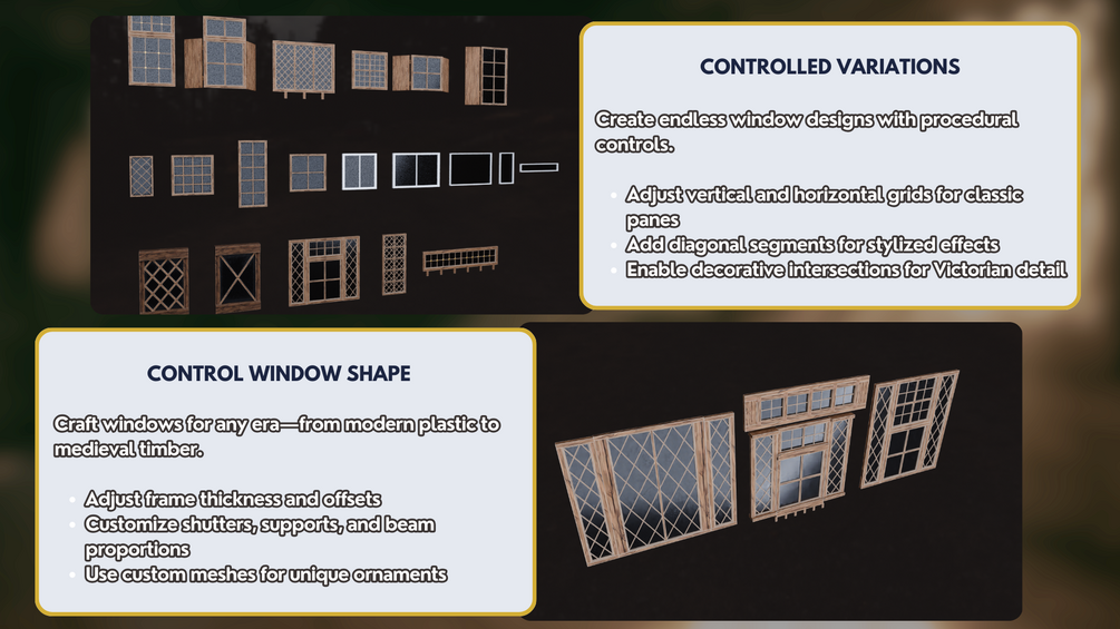 ✔️ Versatile – One node covers sleek modern, rustic medieval, and ornate Victorian windows.