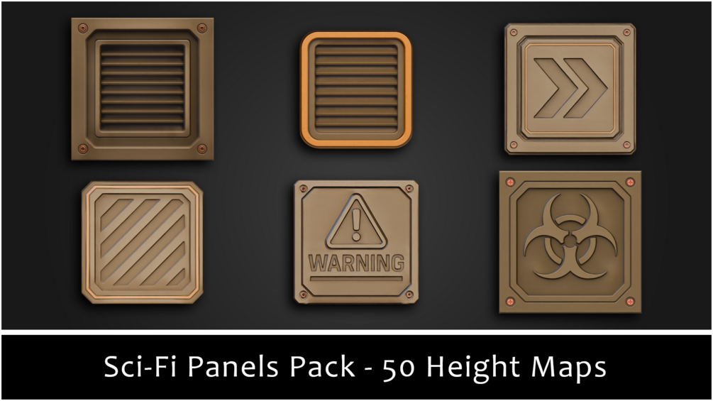 Material overlays – Mix height and color into shaders to emboss console plates, brand cargo crates, and engrave mech armor.