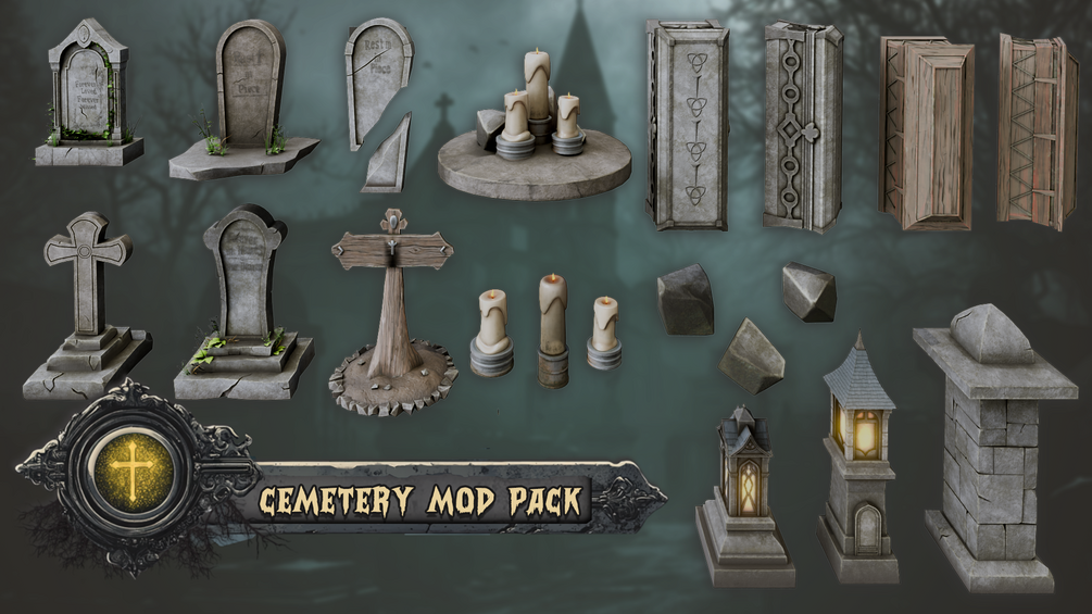 From weathered tombstones and flickering lanterns to ominous gates, this collection has everything you need to build the ultimate eerie cemetery.