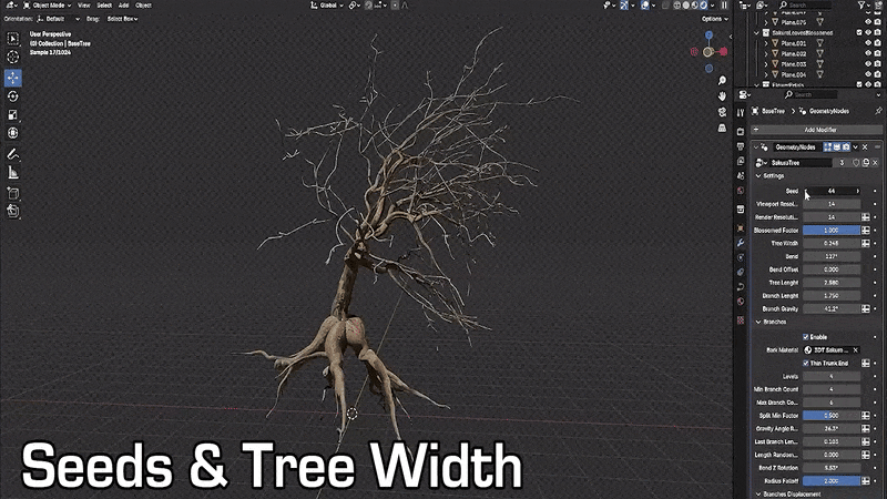 - Real-Time Control – Adjust parameters like tree height, branch length variation, and root spread dynamically while keeping the system procedural.
