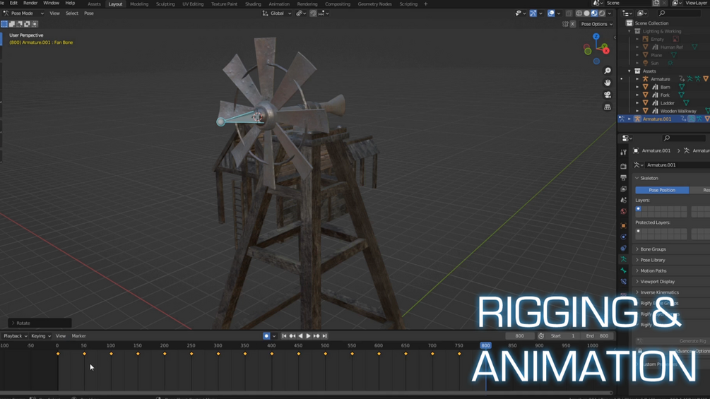 · Discovering the basics of rigging and animating inanimate game assets in Blender