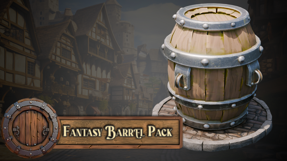Download the 'Blender 20 Massive Fantasy Barrels Asset Pack' now and bring your medieval visions to life with ease!