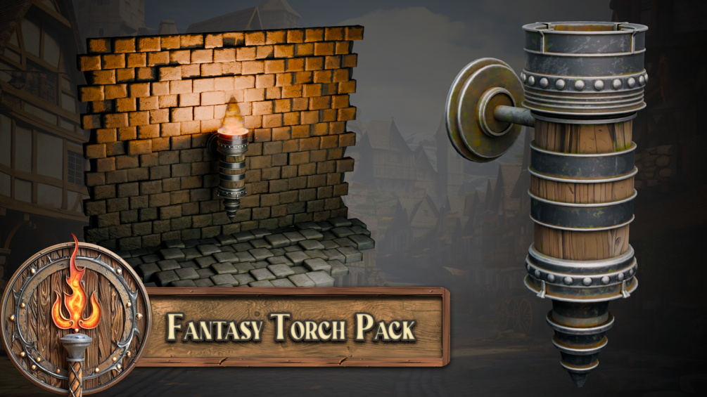 You can buy the 'Blender 20 Massive Fantasy Torches Asset Pack' in four versions: