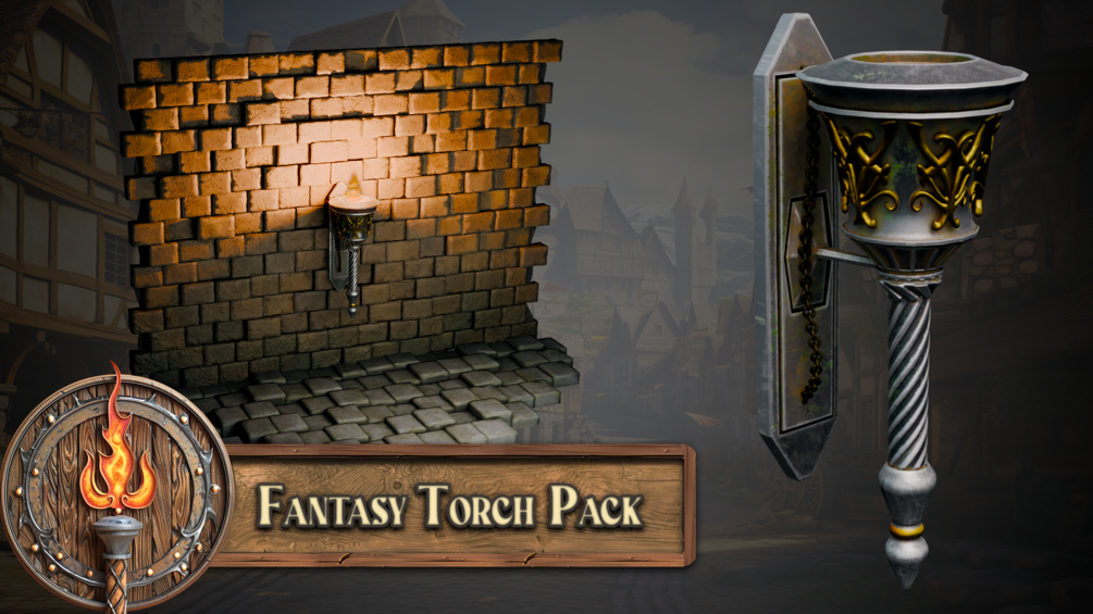 You can buy the 'Blender 20 Massive Fantasy Torches Asset Pack' in four versions: