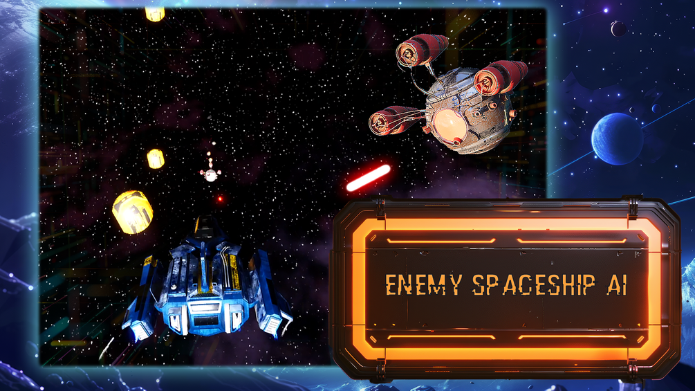 - Enemy Spaceship AI: intelligent enemy AI for a truly immersive experience. Create a parent blueprint system for creation of 2 unique enemies, one that flies towards you to self descturct, the other orbits around you to shoot you down.