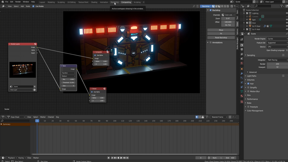 We will be creating a sci-fi door scene – a contraption reminiscent of popular cinema titles. This course is coming out just a few months before a major game release that will revolutionize the sci-fi genre, Cyberpunk 2077 by Project Red. The sci-fi door we will be creating will be a more stylized version of the general sci-fi style.