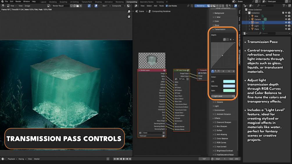 - Advanced Pass Controls: Tweak color, gloss, light, mist, volume, and more—all without needing to interact with any complex node trees.
