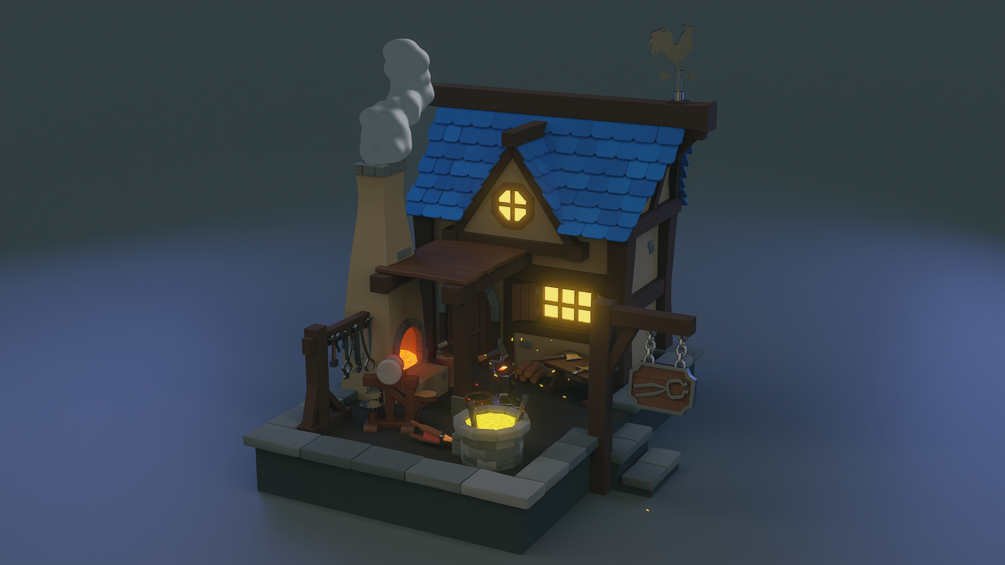 Blender 3 Animated Stylized Blacksmith House | 3D Modelling Guide | Pack Blender file