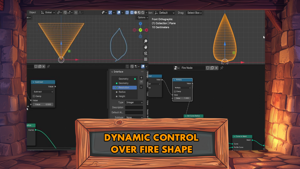 - Dynamic Control Over Fire Shape: Learn to sculpt fire shapes with precision using curvature and mathematical formulas, allowing for easy adjustments of width and radius based on position.