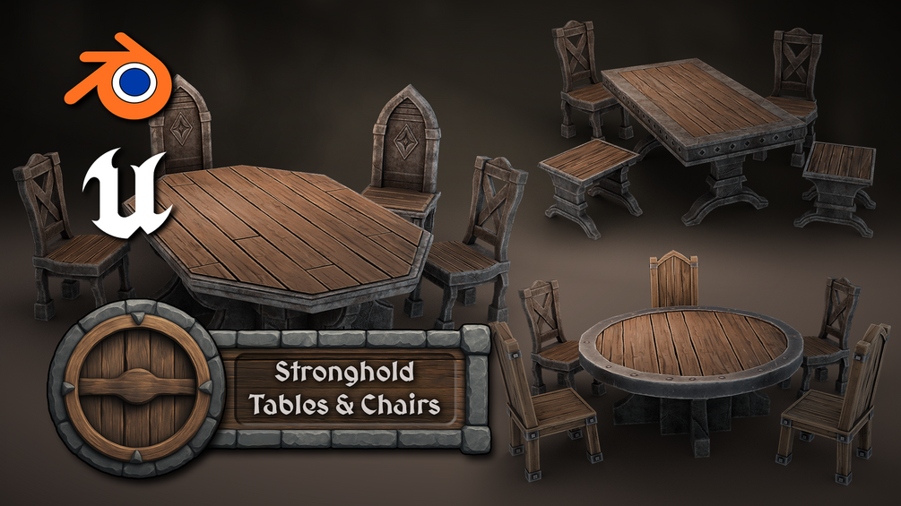 🪑 Introducing the 3DT Stronghold Tables & Chairs Pack for Blender, Unreal Engine & Game Design | 3D Asset Pack! ⚔️