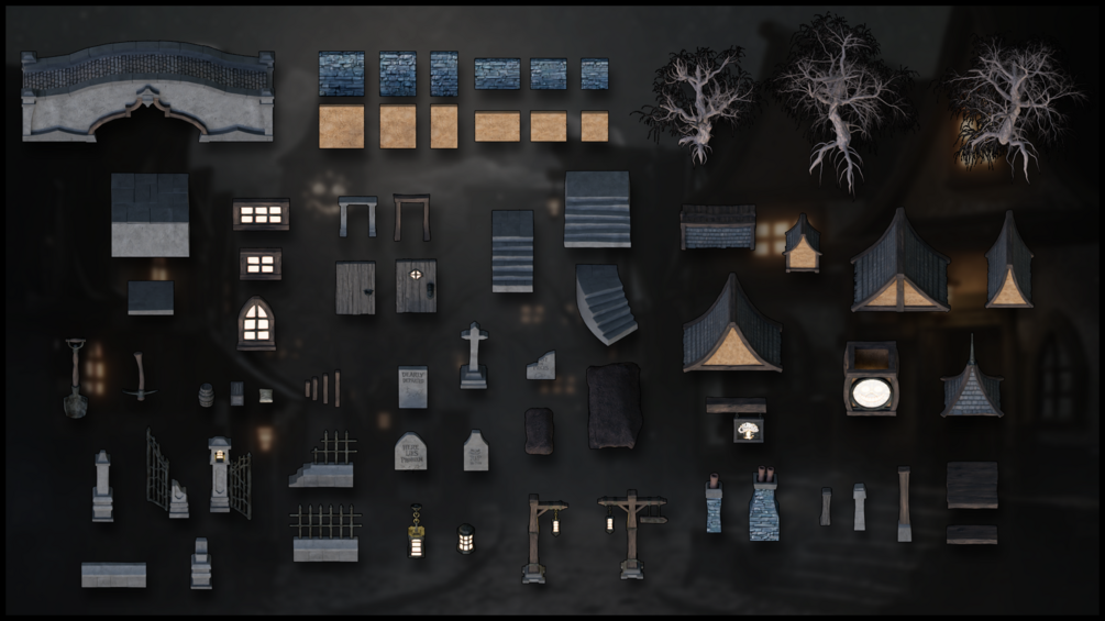 - A Blender-made stylized haunted street modular kit that is designed to fit together properly.