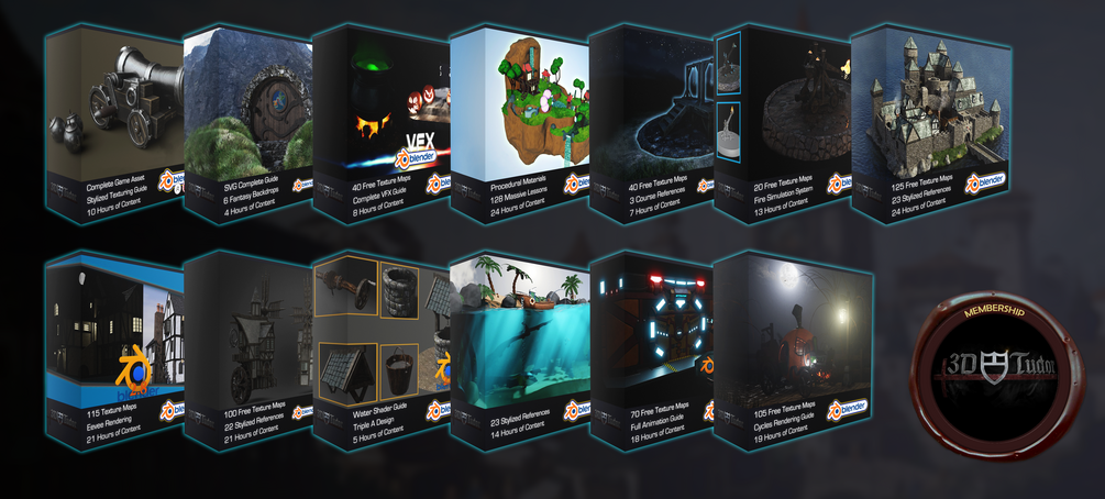 By becoming one of my loyal supporters through this Gumroad membership scheme you will get access to my course library with a different course for the first month of membership for each tier. As you can see tiers 2 and 3 also include .blend files for some of the models that I have made.